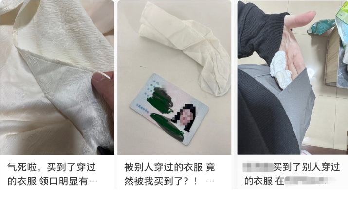 时常有网友发帖晒出照片,称自己买到了别人穿过的衣服。正是因为曾经从新衣服的口袋里掏出陌生人的身份证、开封的唇膏、用过的卫生纸团……