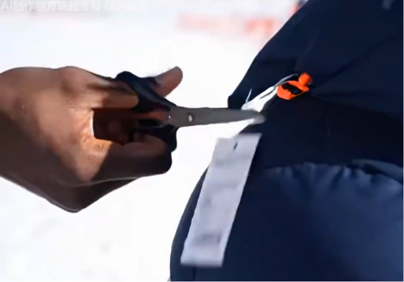 有人使用AI生成“帮”路人剪吊牌的视频,引起争议。(图/AI视频截图)